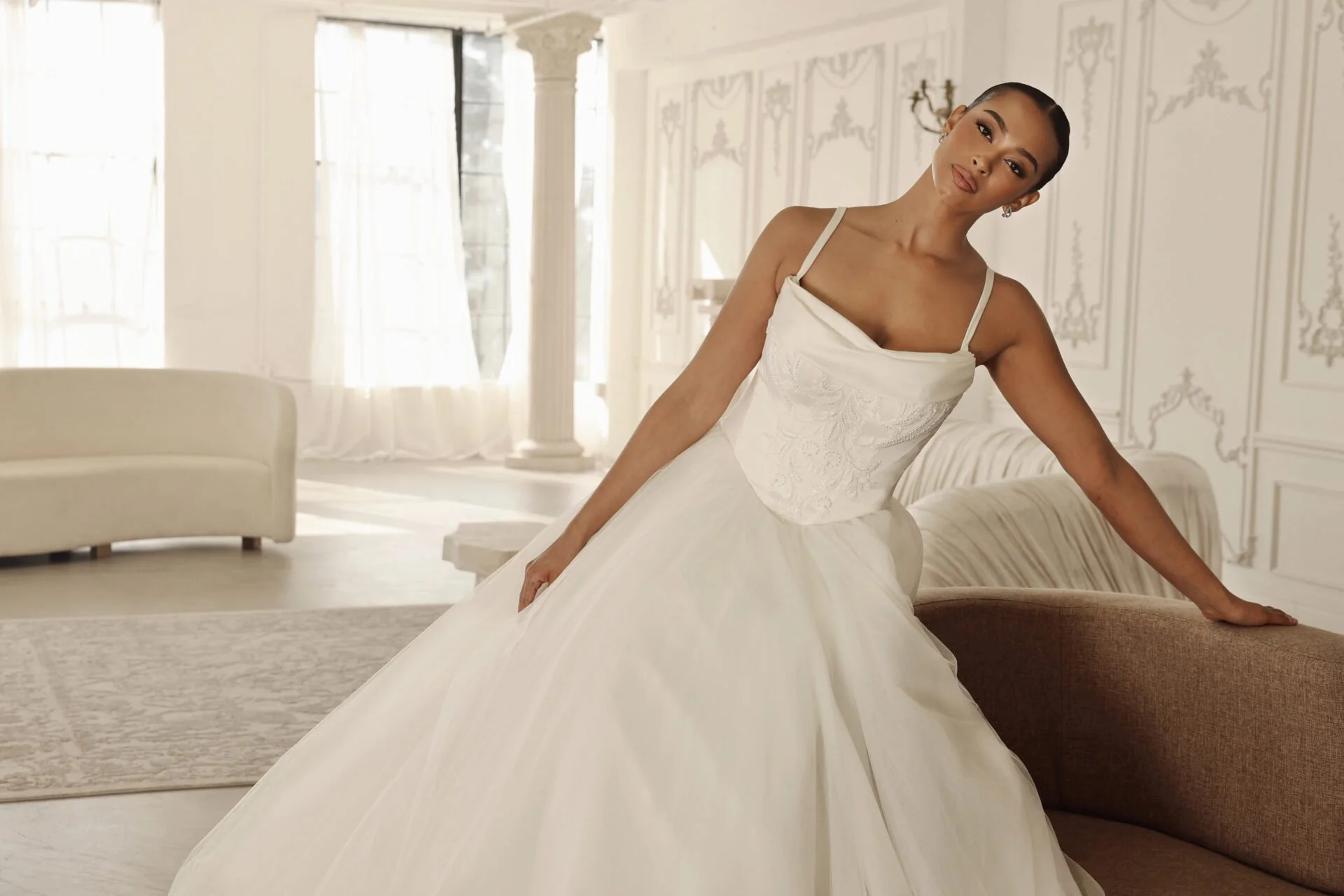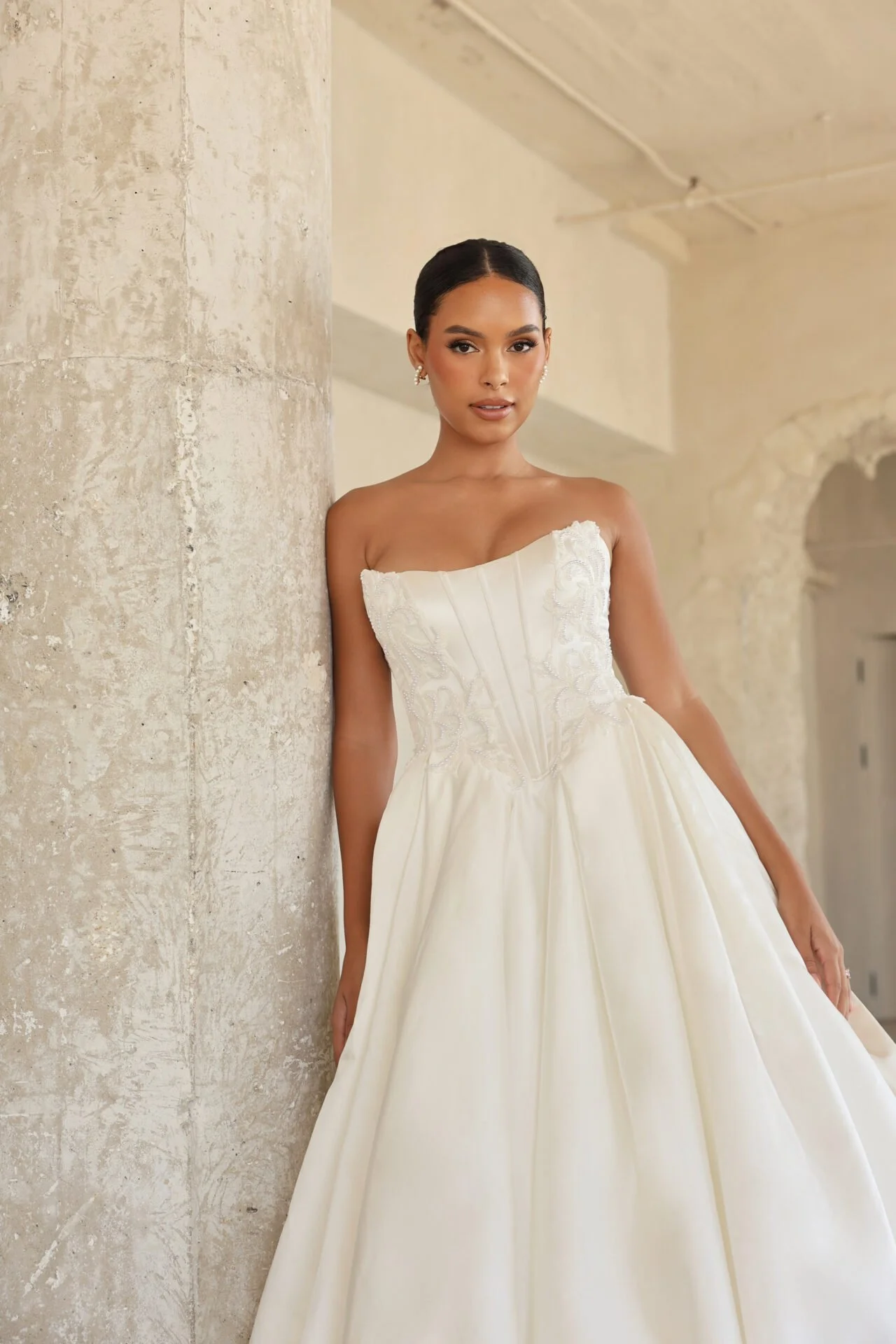 Why Brides Love It: It elongates the figure and creates a couture-inspired silhouette that feels both regal and romantic.
